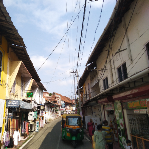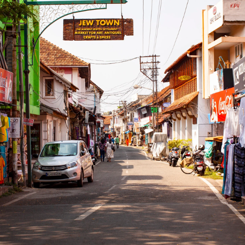 Jew Town in Mattancherry is a narrow street known for its antique shops, handicrafts, and spice stores. It is one of the few places in India that has a history of a Jewish community living for hundreds of years. At the end of the street stands the famous Paradesi Synagogue, the oldest active synagogue in the Commonwealth countries.