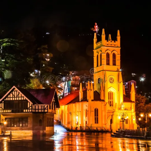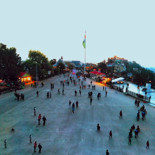 The Ridge is a wide open space located right next to Mall Road and is considered the central point of Shimla. It is famous for its spacious walking area and its beautiful panoramic views of the mountains. Many popular events, including the Summer Festival, happen here, where people enjoy music, dance, and cultural shows.